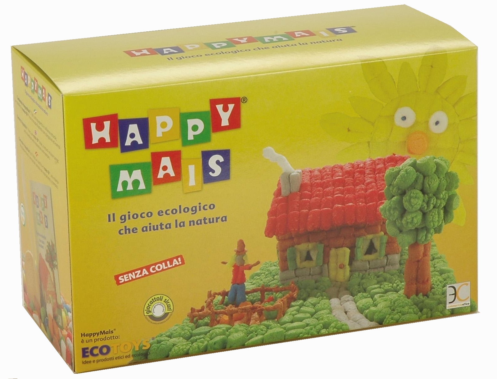 Happymais® è un gioco ecologico perché è a base di Mater-Bi™, un nuovo materiale a base di amido di mais, completamente biodegradabile. I colori utilizzati sono colori alimentari e quindi innocui.